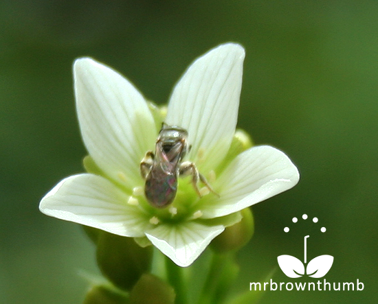 To give you an idea of the size of the flower on this Venus Flytrap here's a pictures of a sweat bee foraging. You know how small sweat bees are, right? They're tiny bees that you probably see often flying around your garden but mistake for flies.