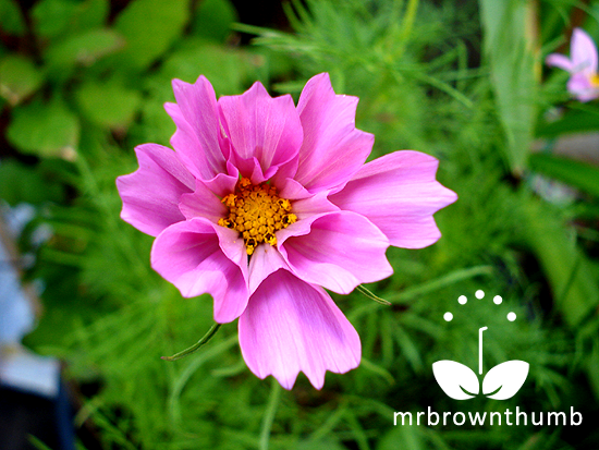 I keep saying that I'm not a fan of pink flowers but they somehow keep appearing in my garden. Although, I forgive "Rose Bon Bon" for being pink, mostly because of the showy blooms and because the seeds were free. Looking at the blooms of this comos it is easy for me to anthropomorphize the flower and like it more than I really mean to.